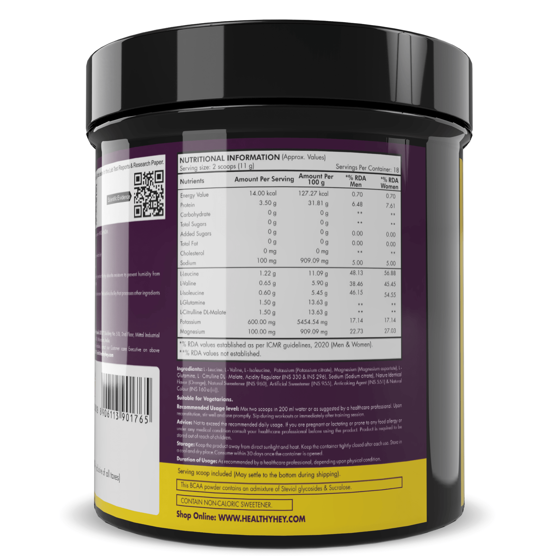 Elevate your workout experience with our BCAA Powder 2:1:1, specifically designed to support your fitness journey. This premium supplement is packed with essential branched-chain amino acids (BCAAs) and comes in a refreshing tangy orange flavor. Each container offers an impressive 41 servings, making it a valuable addition to your routine.