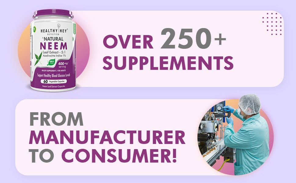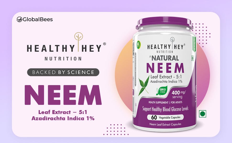 Embrace the natural power of neem with HealthyHey Nutrition's Neem Leaf Extract capsules and take a step towards a healthier, more vibrant you.