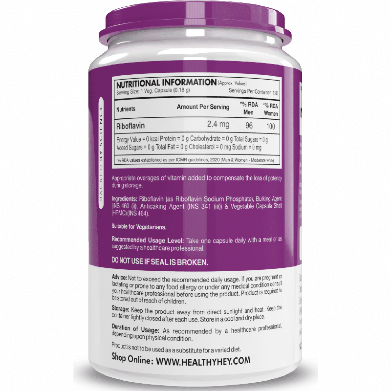 - Since the body can store only small amounts of Vitamin B2, it is essential to consume it daily to maintain optimal health. Our Riboflavin capsules provide an easy and effective way to meet your daily needs.