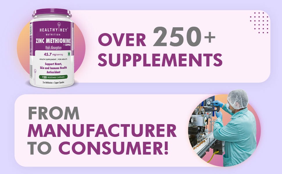 Ingredients: Zinc Methionine, Copper gluconate, Bulking agent (INS 460 (i)), Anticaking agent (INS 341(iii)) & Vegetable capsule shell (HPMC) (INS 464).