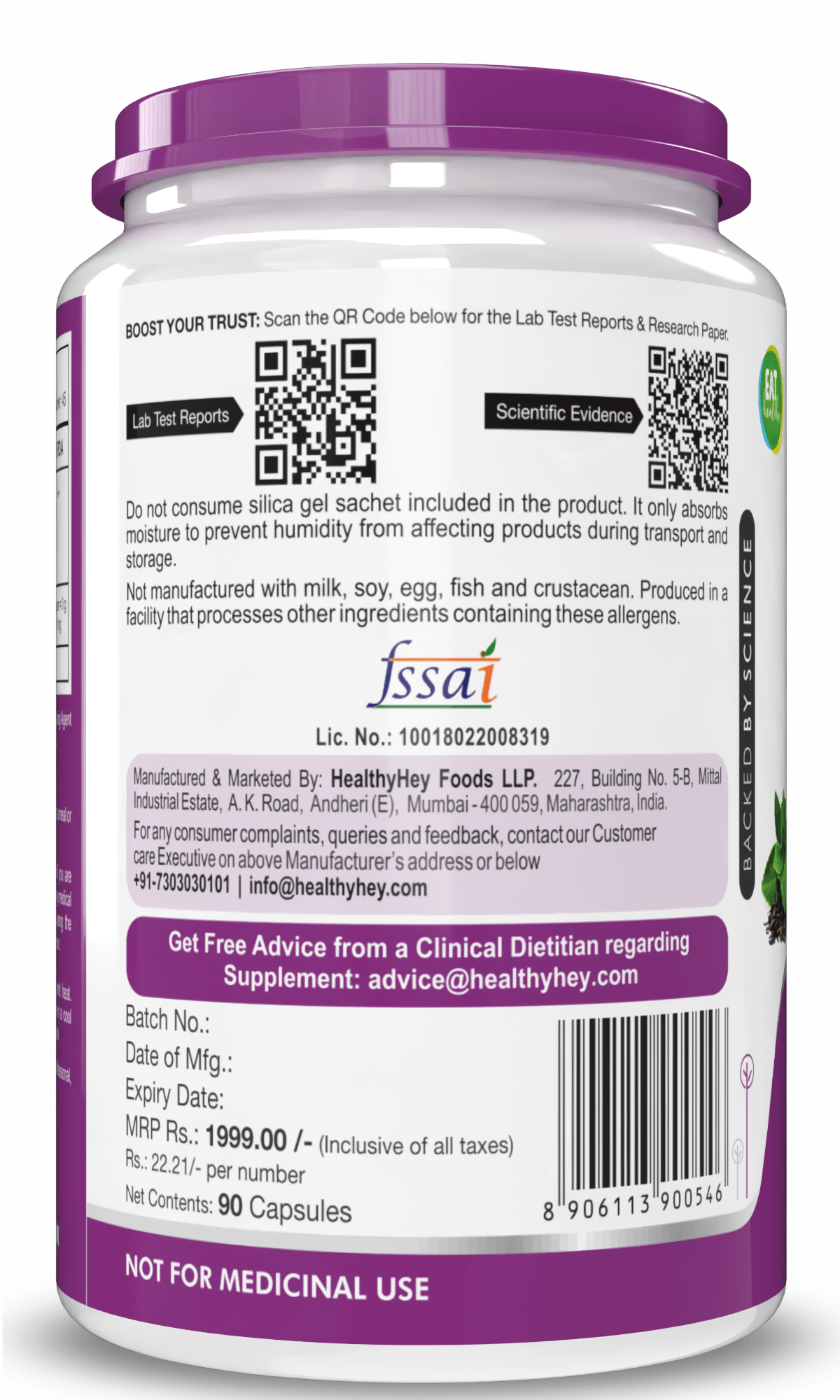 Ingredients: EGCG 45%, Anticaking Agent (INS341(iii)) & Vegetable Capsule Shell (HPMC) (INS464)