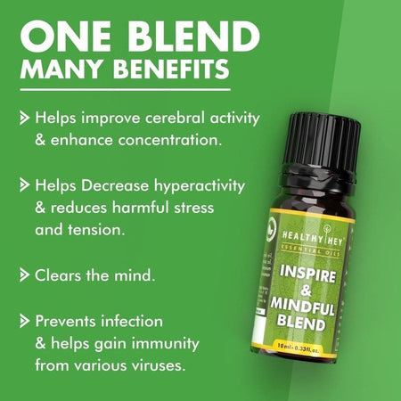 Unlock a world of tranquility and mental clarity with HealthyHey Essential Oils - 100% Pure Therapeutic Inspire and Mindful Blend Oil. This meticulously crafted blend is designed to enhance your well-being and elevate your daily rituals.