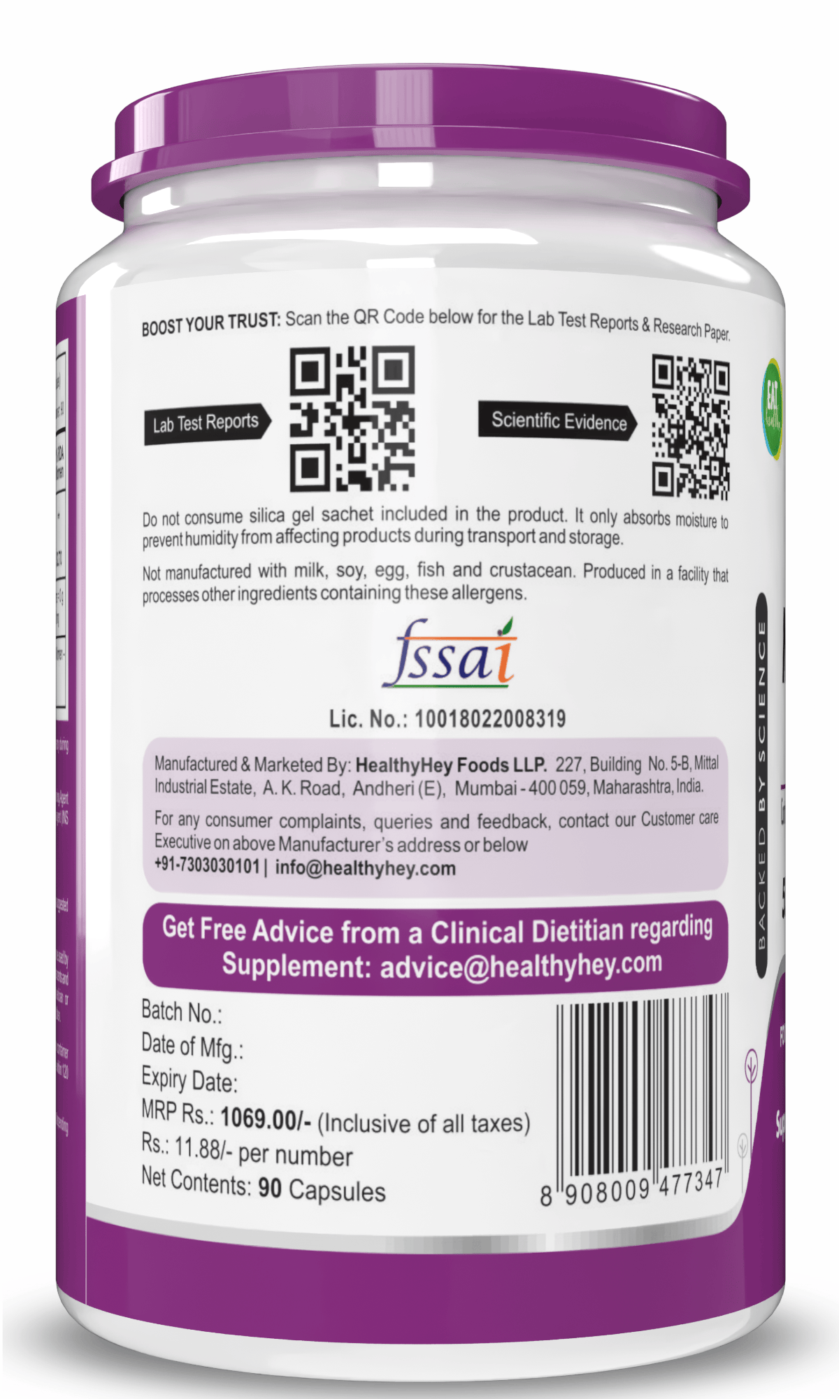 HealthyHey's Magnesium Glycinate is tested for heavy metals by an external NABL accredited laboratory. The FSSAI limit for lead in nutraceutical products is 2.5 mg/kg. Our results show lead levels well below this limit, indicating that the product is safe for consumption and free from any associated side effects. -
