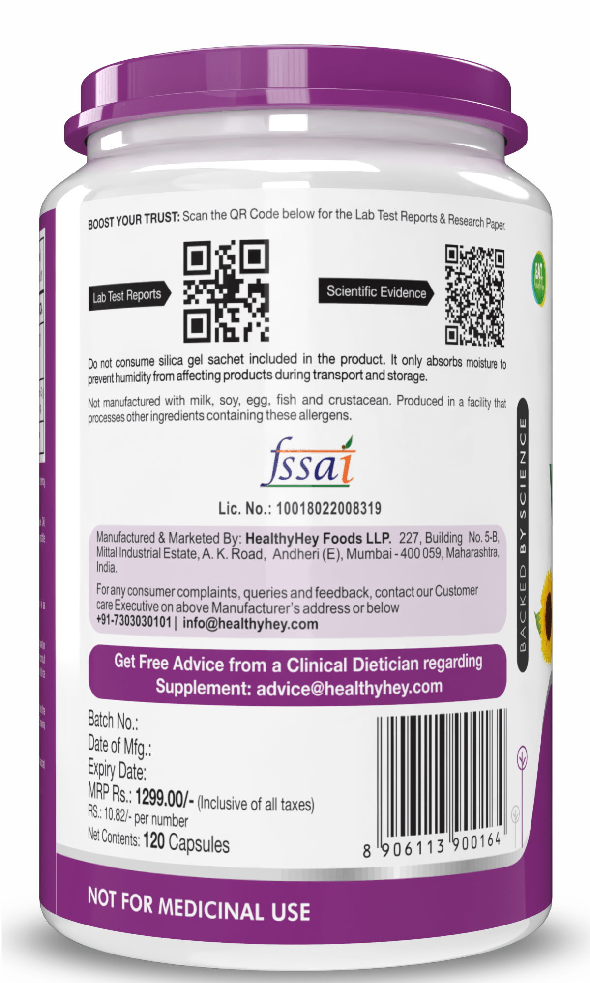 Healthyhey Vitamin E Capsules are your go-to solution for enhancing skin and hair health. Made from 100% pure, organically farmed sunflower seeds, these capsules are packed with essential nutrients that promote overall well-being.