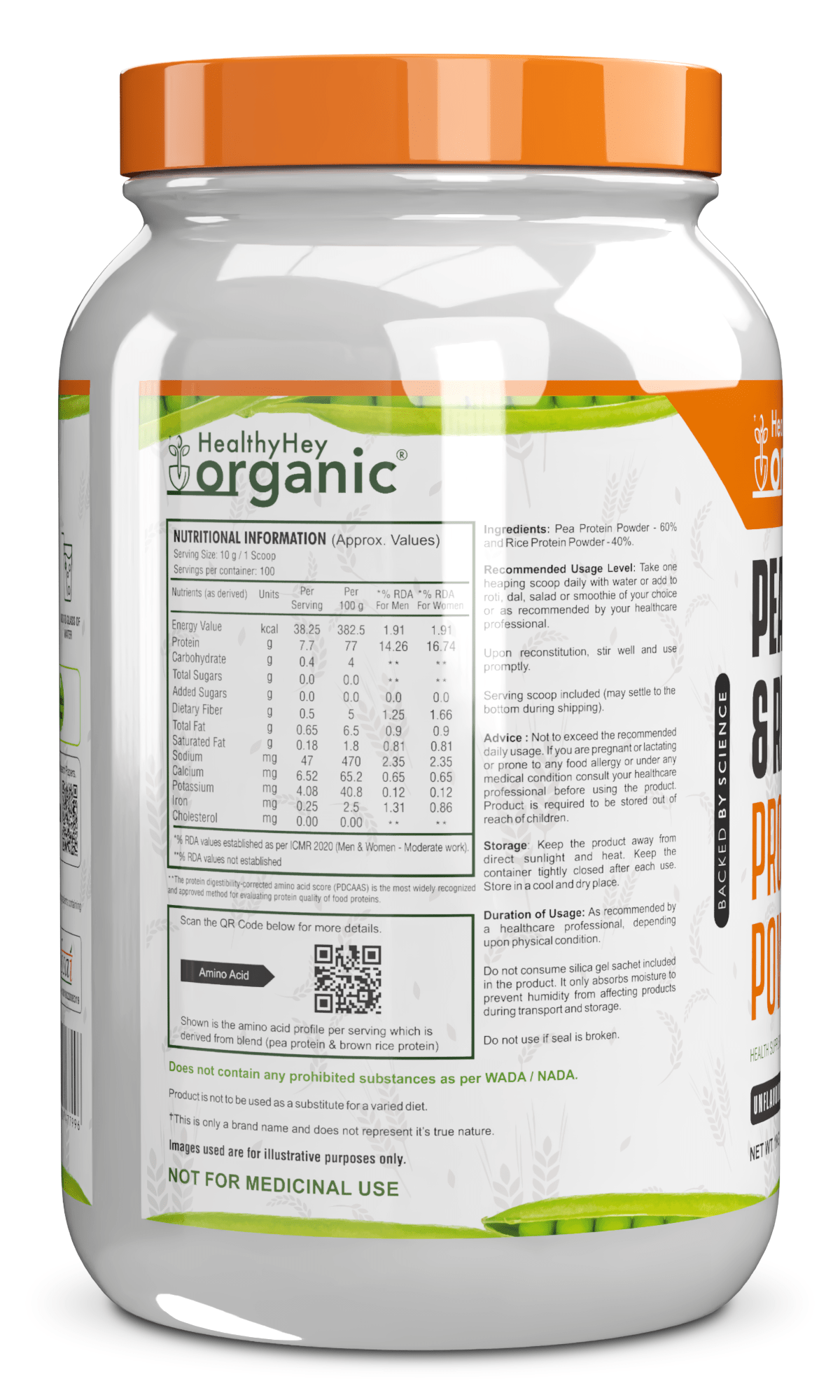 Elevate your nutrition with our 100% Plant Protein Powder, a perfect blend of Organic Raw Pea and Brown Rice Protein Isolate. This unflavoured protein powder is designed to support your active lifestyle and deliver numerous health benefits.
