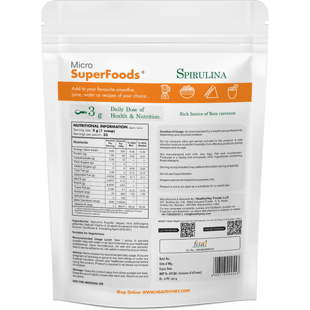 Ingredients: Spirulina Powder (algae) from Arthrospira platensis, Natural Vitamin E( D-alpha-tocopherol) from Natural Source - Sunflower And Anticaking Agent(INS 551).