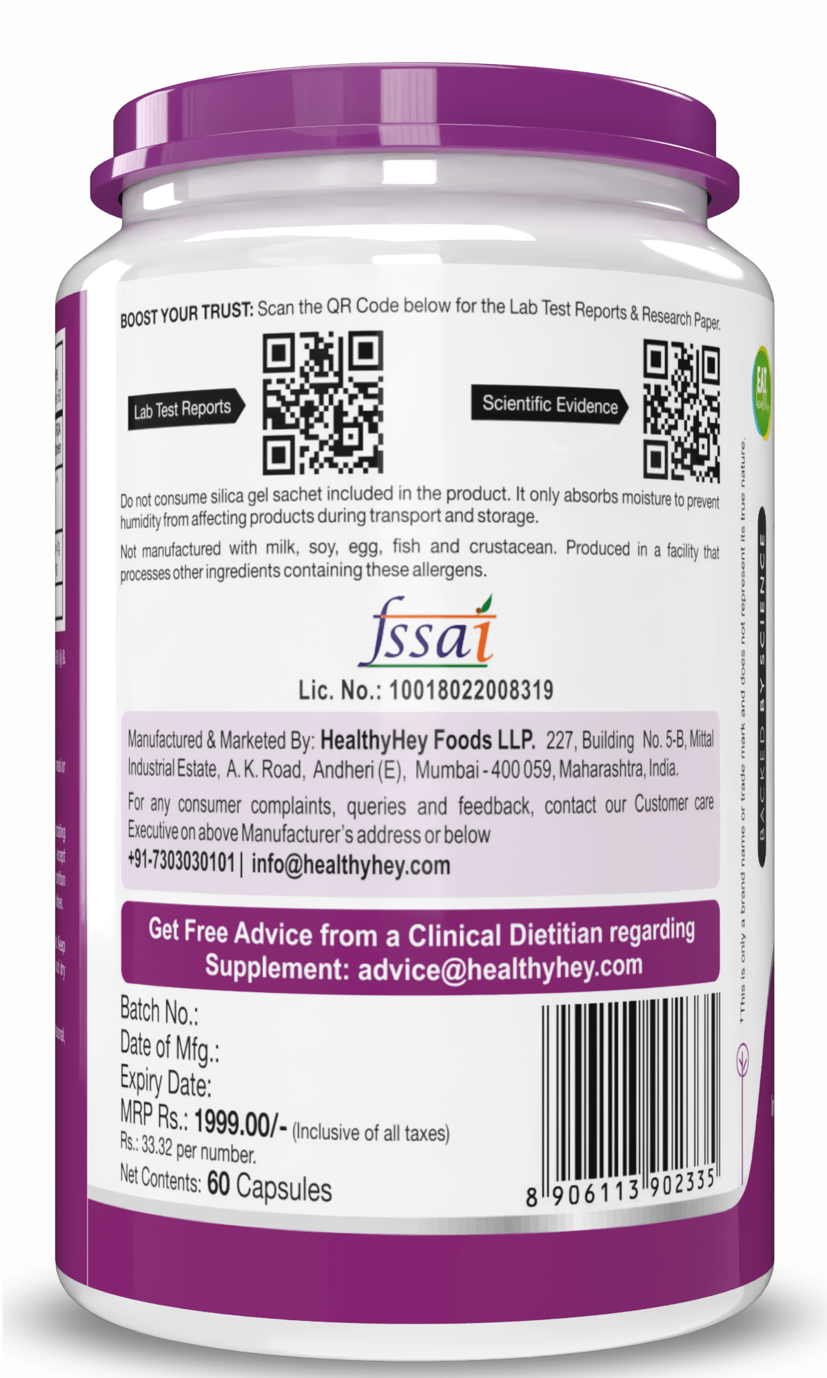 • Manufactured with Care: All HealthyHey Supplements are produced in our FSSAI Certified facility, ensuring the highest quality standards.