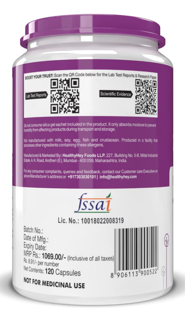 | Ingredients: Zinc Citrate, Bulking Agent (INS 460 (i)), Anticaking Agent (INS 341(iii)) & Vegetable Capsule Shell (HPMC) (INS 464) | |||
