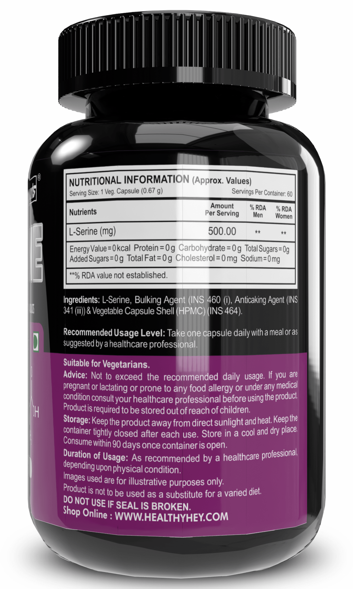 | Ingredients: L-Serine , Anticaking Agent (INS 341 (iii)) & Vegetable Capsule Shell (HPMC),(INS 464). | |||